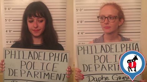 Peyton and a few other anti-communist demonstrators added some drama to the evening, but overall, it was less chaotic than the RCP’s showing at the Republican National Convention in Cleveland last week, when a phalanx of police officers stormed into an intersection where Johnson and others were lighting a flag, arresting them and clearing the assembled crowd before the demonstration ever got off the ground. In Philly, a few dozen cops were assembled at the scene, but none intervened in the spectacle. I asked an officer who was taking drags from a thick cigar as he watched what he thought of it all. “It’s not bad. It’s peaceful,” he said. “Everything’s been peaceful so far.” Another officer admonished me to pick up the poncho I’d accidentally dropped on the ground, and nearby, a man in a green hat stood dreamily next to an alpaca he’d evidently brought along to witness the demonstration. A Green Party member, wearing a toga, led a few others in a chant of “Jill Not Hill!”