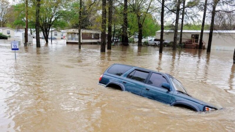 Dozens of cars had water up to their roofs. Rescue workers wearing life jackets waded through muddy water nearly to their chests to reach stranded residents. Hundreds of more people in mobile homes on higher ground were isolated because water covered the only entrance to the complex.
