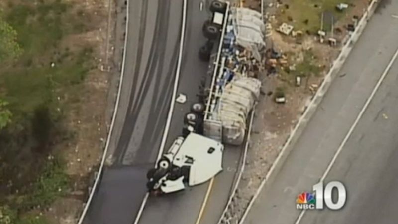 The big rig, which was holding about 20 million bees in 460 boxes, overturned on the state Route 896 northbound on-ramp to I-95 northbound in Newark shortly after 6 p.m., according to officials.