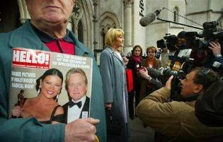For the 2000 wedding of Catherine Zeta-Jones and Michael Douglas, British tabloid OK! had an exclusive contract with the Douglas-Jones enterprise to run dewy styled photos of the proceedings. Rival exclamatory publication Hello! scammed and ran their own photos, resulting in years of litigation between the two tabs. This week, the dispute reached Britain's highest court — a panel of "Law Lords" in the House of Lords. OK! claims business interference, Hello! claims the journalistic right to "spoil" its rival's scoop. Concerning a particularly unflattering Hello! shot of Douglas feeding her wedding cake, Zeta-Jones says, "I don't usually like my husband shoving a spoon down my throat to be photographed." Notice the key phrase "to be photographed" — Douglas can shove a spoon down her throat all he wants, long as it goes undocumented. So amusing that the highest British court has to waste its time with such frivolous celebrity tomfoolery. Silly foreigners! Oh, wait.
