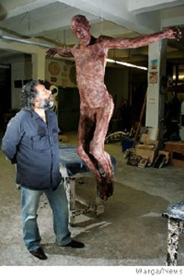 Cosimo Calallaro's sculpture "My Sweet Lord," which is an anatomically correct rendering of Jesus Christ made from nearly 200 lbs of dark chocolate, is provoking Catholic ire and funny headlines. The Daily News's stab? "CHOC FULL O'ANGER." Not bad! But we know you can do better. To get the ball rolling: