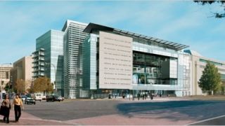 The building's transparent exterior is meant to convey the idea of a free press and an open society. A mammoth rectangle frames the facade, suggesting a television or computer screen that provides what the museum calls a "window on the world." Visitors enter through a Great Hall of News, where they can see breaking stories on a giant digital "zipper" before setting out on a 1.5-mile path of displays and interactive kiosks. The building, which has seven floors, also contains 135 upscale apartments, Newseum shops and Wolfgang Puck's three-story restaurant, the Source.