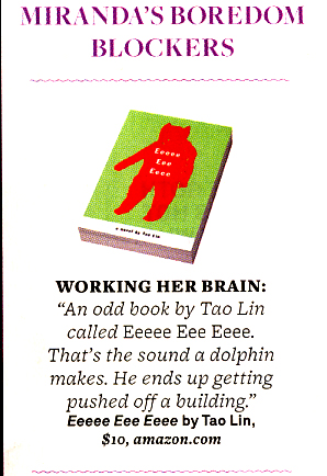 A bunch of people are perpetually and loudly super-annoyed by indie director-author Miranda July, who is inevitably described as "elfin" or "pixieish" or "ethereal" in profiles, but we've only ever been able to get mildly peeved at her. Mostly because the ))<>(( scene in Me You and Everyone We Know made us actually squirt Coke out our nose (no, not into someone else's nose forever). But on page 32 of this month's Jane, she squandered that goodwill by recommending a book by someone that you've never heard of but who we absolutely despise. The reason you've never heard of him is that we have been doing our utmost to protect you from his spammy, retarded, deceptive, always on the verge of interesting but never actually interesting Internet stunts. But we've long been planning an all Tao Lin edition of Glaring Omissions and, well, today's the day.