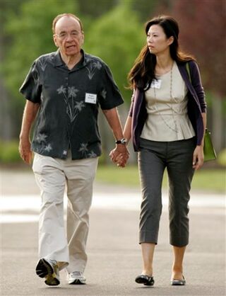 In lieu of the regular (and tedious) daily roundup of Rupert Murdoch stories, please enjoy this A.P. picture of the News Corp. mogul and his wife, Wendi Deng, strolling about Sun Valley. Is it just us, or do the people at Jim Henson Productions have a pretty good case of copyright infringement here?