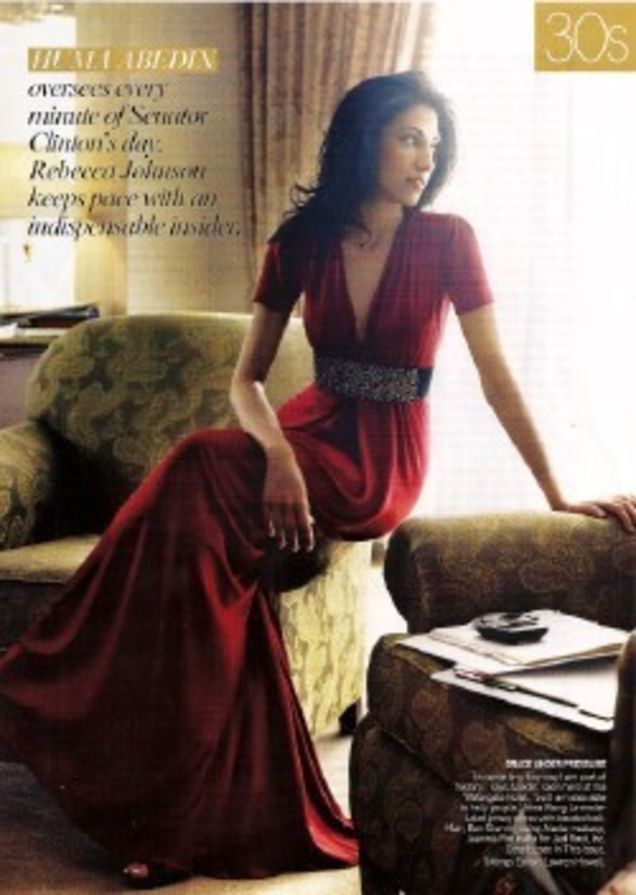 This month's Vogue—the one with not-so-reformed shoplifter Winona Ryder on the cover—profiles Hillary Clinton's traveling chief-of-staff Huma Abedin, in an article that both reveals more and says less about Abedin than the Observer's April profile of her. (The Observer piece, as Vogue helpfully points out, was done without Abedin's cooperation.) Abedin comes across as an incredibly effective, stylish, attractive, über-woman without whom her boss would be lost. (This is accurate!) And also a control freak. There's this telling bit when the writer, Rebecca Johnson, is allowed to look at Abedin's BlackBerry—but only if she agrees not to write who's in it. ("Some of the most famous names in America." Mmkay!) But then, why the non sequitur about John Cusack and Lance Armstrong?