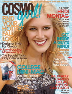 The Hills' Heidi Montag is on the cover of the October issue of CosmoGirl, and the accompanying article (a Q&A with both Heidi and her boyfriend Spencer Pratt) is, we suppose, meant to set the record straight regarding Heidi and Spencer's relationship and their enmity towards Heidi's ex-BFF Lauren Conrad. But we came away from it feeling even more like Spencer has fully completed his takeover of Heidi's brain. Spencer is "smart, funny, sweet, genuine, and a great businessman. He's my dream guy!" Heidi gushes. "I could start crying right now when I think of being without Spencer." Crazy! Then they start trashing Lauren Conrad, and that's when things start getting really good.