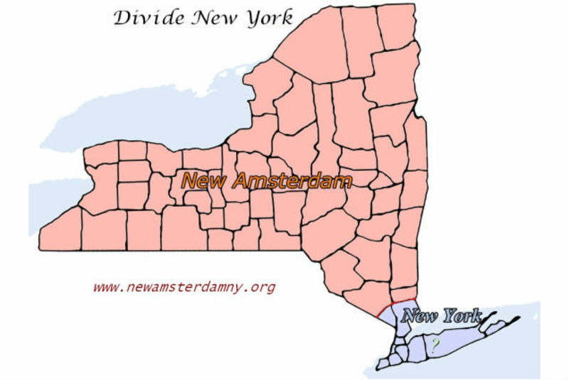 That attractive graphic up there represents a plan put forth by a group of liberty lovers who’d like to see New York state split into two “autonomous regions”: New York, below, composed of the city plus Long Island and Westchester and Rockland Counties, and New Amsterdam, above, composed of everything else. If that sounds appealing to you, you can attend their rally on Sunday.
