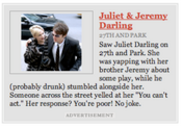 From the mailbag: "Could you run some kind of item (or even just this email) that could serve as a clearinghouse for all the things commenters have to say about those retarded ads that have been running in the stalker section?" Yes! Yes we could. Oops we're so fired!
