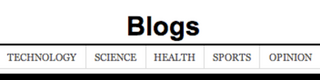 The haphazard and anti-blog organization of newspaper websites gives us things like the Washington Post's weird pop-up listing of blogs and columns: