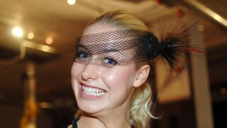 But the evening's real highlight was the outfits the cocktail waitresses were forced to wear. In keeping with Campari's "it's sort of the 30s, but breast implants have been invented" advertising, they were dressed all sexy-retro, and they were wearing these adorable little hats with veils by Victor Osborne. We were hoping that was what was going to be in the goodie bag, or rather goodie box. Instead: a miniature bottle of Campari.