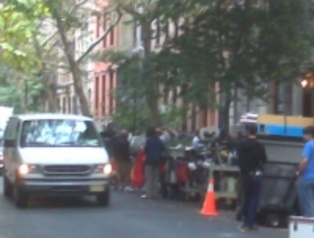 From our army of Sex and the City filmspotters, we learn there's shooting in the West Village today: "They're back! Perry Street is shutting down and being staged for Spring. They're bringing in tree branches, flowers, etc. Short commute for Sarah Jessica Parker today." And: "I was trying to make an appointment on Friday morning in Greenpoint and I got lost and had no idea where I was, until I saw a familiar face: Kristin Davis. She was on a patio, shooting a lunch scene for SATC:The Movie. I didn't see any other actors around though—maybe that's the big twist in the movie: Charlotte dining alone in Brooklyn! GASP! Funny thing was a woman who was driving by asked one of the crew guys what they were shooting and he shot back unconvincingly 'A commercial.' And then shooed her away."
