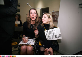 At the cocktail party preceding the Council of Literary Magazines and Presses spelling bee last night, former Star editor Joe Dolce was rubbing up against cheetah-sheathed Page Six editor Paula Froelich. Was he here to spell, like Paula? "God no." He was here to cheer on his boy, HarperCollins VP Jonathan Burnham. Joe has been mostly occupied by cheering Jonathan on lately, though he hasn't been completely at loose ends during his year of unemployment: "I was working on a web-based project about design, but I had to pull back from it recently," he said, as a very tall, beautiful woman in a houndstooth skirt and enormous diamond earrings came up behind him and mischievously grinned at everyone. It was Alex Kuczynski, who has been described by this website as a "pervert," a "body modification expert," "somewhat plastically-reconstructed," a "facially-reconfigured semiotician," and most often, "Times rich lady beat reporter." "Hi Bunny!," she said. "I looove your bangs! You look like a person on the 'Brady Bunch'!" Did she mean Cousin Oliver? Whatever, totally charmed! Nikola Tamindzic documented this.