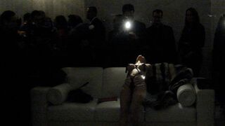 As soon as Kennedy finished, the "World Famous *BoB*" took to a bit of floor in "the Versace room" and took off most of her clothes. It was burlesque. Men smoked cigars that had just been rolled for them, their collars turned up. "It's almost picture time!" one said and whipped out a digital camera. *BoB* made her tassled pasties swing in opposing circles. "Dude, that was fucking awesome," said one, high-fiving another.