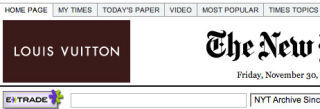 Each Friday, NYT.com General Manager Vivian Schiller and 'Times' deputy managing editor Jonathan Landman write an in-house email on the subject of The Future and The Internet and The Newsroom. This week, do your own textual analysis: "Look at the nytimes.com homepage, or any section front. There's lots and lots of stuff. Words. Pictures. Headlines. (Big ones and little ones.) Ads. (Little ones and big ones.) Video. Vertical things. Horizontal things. Icons. Navigation bars. Tabs. It's a riot of activity. It's built around information—getting it before impatient users, grabbing little bites of attention span. Look again at T Online. Not so much stuff."