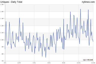 Each Friday, 'New York Times' deputy managing editor Jonathan Landman and NYT.com General Manager Vivian Schiller write an in-house email on the subject of The Future and The Internet and The Newsroom. This week: "The number of people coming to our website has really popped. The TechCrunch blog, a respected source, attributes this to the dismantling of our Times Select pay wall. It's reasonable as a hypothesis but premature as a conclusion. Lots of things affect Web traffic so it's hard to isolate individual factors. One thing that obviously has a big impact is news. Here's another, maybe not so obvious: Page weight.... In June, the home page took an average of 1.52 seconds to load. Heavy. For September, the first month our new page-lightening technology was fully installed, the load time dropped to 1.18 seconds, roughly a 22% improvement even though our page views grew by 19% over the same period (574 million in June to 683 million in September). Our performance has continued to improve since then: October: 1.15 seconds, November: 1.14, and so far in December: 0.96, while traffic continues to grow."