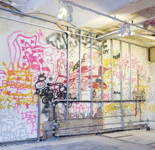 Sometimes, the idea of cutting-edge art is worth more than the actual existence of said art. In the case of the new "luxury lofts" of 151 Wooster, the virtual proximity of a mural by Basquiat and friends might be worth a lot. The apartments are going for about $8 million (with a maintenance of $42,000 a year). The Times reported back in June: When they were tearing into the place, a mural was discovered on the eighth floor behind layers of sheetrock and plumbing. It was, if you're into this sort of thing, beautiful—a collaboration between Jean Michel Basquiat, Fab 5 Freddy, Futura 2000 and others. Basquiat was friends with a previous dweller, art-magazine editor Edit deAk, who lived there in the early 80s when it was probably little more than a coldwater flat. The mural has been renamed "The 151 Wooster Wild Style Wall" and is now the centerpiece of "Gallery 151." And last night was the grand opening!