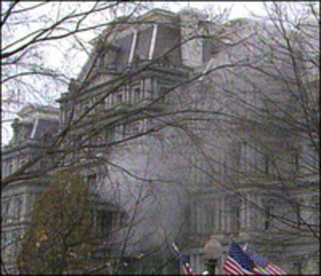 DC is on fire for once! The "old executive office," an pretty old building basically across the street from the White House, is AFLAME on the "Today Show" right now, due to a problem in an "electrical closet" in the Vice President's "ceremonial office." Mishap in the torture room or is he DESTROYING THE EVIDENCE? We'll never know 'cause "Today" just cut back to Patti LaBelle's fightin' choir. [WP]
