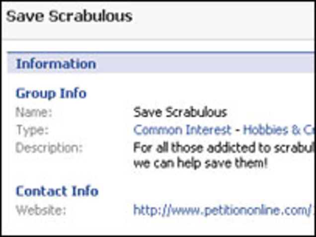 Everyone knows Facebook groups can be made by anyone, are unofficial and unvetted, and don't have any bearing on real-world decisions even within Facebook. I mean, they're below petitiononline.com on the "gives a damn" scale, since the only effort required to "stand up for the cause" is clicking a link to join the group. But in stories like this one from the BBC, reporters don't make that caveat. Treating Internet comments as commensurate to real-world discussion makes sense to lazy reporters: why solicit quotes when they can lift some from a YouTube comment thread? But giving hope to Facebook users by pretending their "save Scrabulous" or "bring back Studio 60" group has any bearing on the real world, is cruel. Thank god the leisure activists deserve it.