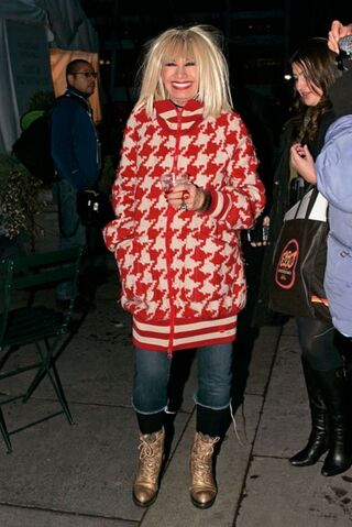 [(L'Épouse Muzzy's Apprécie Une Nuit Dehors) Fashion designer Betsey Johnson at Fashion Week in New York last night; image via Bauer-Griffin]