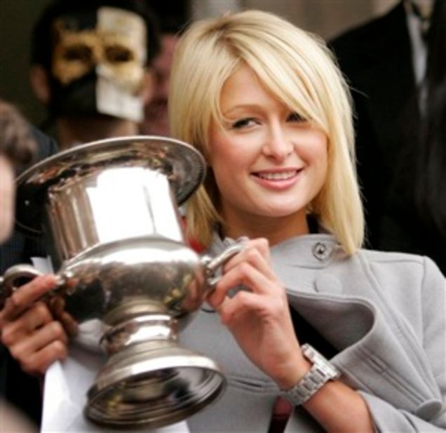 Before I started writing for this here publication, I didn't really know much or care about Paris Hilton. The drunken, showbiz dabbling heiress just didn't catch my fancy because, really, what was the point?? Well I've been covering her for over a month now and, as it turns out, I sort of love her. The woman is unflappable. Her big, starring-role movie tanked (making about $76 per theater), but it doesn't seem to have slowed her one bit. Look! Just today came an announcement that she's doing a surprise performance with the Pussy Cat Dolls in Las Vegas. Why? Because she's promoting some sort of shoe line. Also, because why the hell not. She was recently given a mock award by the Harvard Lampoon, and she took it in self-deprecating stride. Sure she went to jail, had a sleazy night-vision sex tape, set a shitty example for her twinkish brother Barron, and is most likely a vainglorious monster, but I really don't care.
