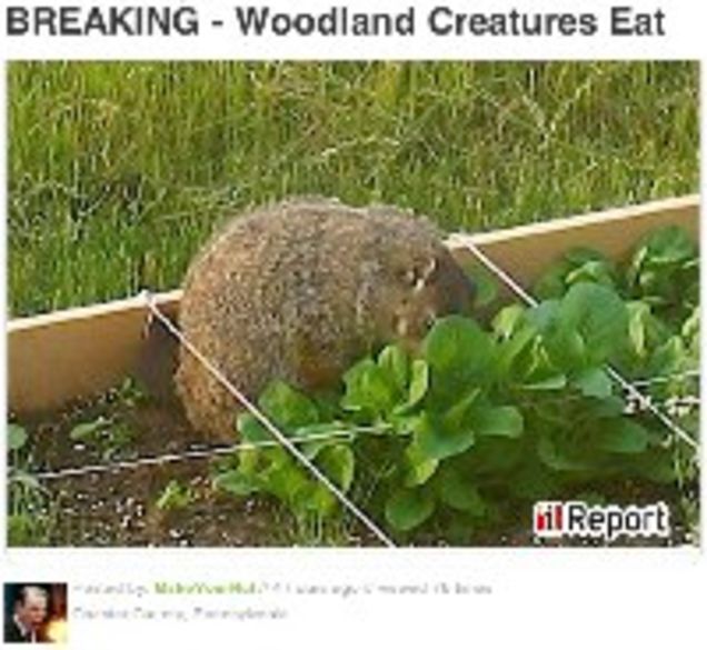 The full headline is "BREAKING: Woodland creatures eat novice gardener's summer crop." Not actually from The Onion.