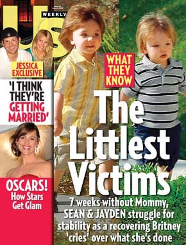 The celebrity weekly's cover story is actually about how the children of mentally ill famous woman Britney Spears are pretty much doing just fine, it turns out, under the care of people who properly strap them into carseats and wear underpants, but there's no denying the power of that headline. What do they know? Is Us Weekly willing to do whatever it takes to find out what Sean and Jayden know? There are lives on the line, people. The entire celebrity-industrial complex may depend on whatever actionable intelligence can be procured—by any means necessary—from these tow-headed youngsters. How do stars get glam? Who benefits? That's the real question, isn't it—why?—the "how" is just scenery for the suckers. Lufti, Adnan, X17, TMZ, it keeps people guessing like a parlor game, but it prevents them from asking the most important question—why? You're close, Us Weekly. Closer than you think. [Us Weekly]