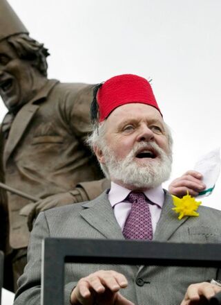 [Anthony Hopkins at the dedication ceremony of a statue memorializing comedian Tommy Cooper in Wales over the weekend; image via Bauer-Griffin]
