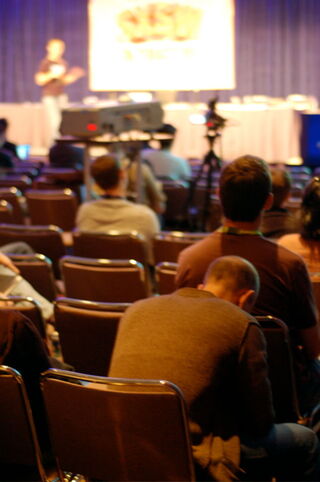 Amazon.com founder and CEO Jeff Bezos didn't seem too attentive in the "Top Ten Lessons Learned in E-Commerce" panel earlier today at the South by Southwest conference in Austin. While Zappos.com CEO Tony Hsieh presented his ten lessons — "don't compete on price" and "don't worry about competitors" among them — Bezos spent most of the time on his BlackBerry. Captions in the comments, please.