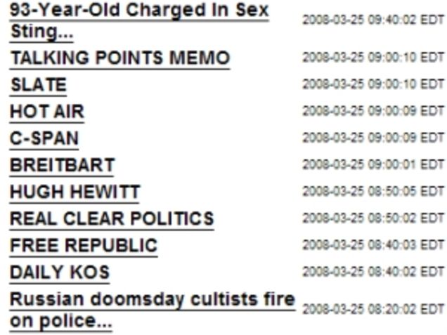 The Drudge Report's permanent list of links to blogs, papers, columnists, and other sources has always been idiosyncratic. Peggy Noonan and Rosie O'Donnell share precious space with Forbes and CNN; blogs are generally underrepresented but Gawker's long been a staple. Earlier today, he quietly updated. New to the Drudge permalink club: Daily Kos, Free Republic, and Talking Points Memo, among others. The man's had Perez Hilton up there for god knows how long but he's just now getting around to a web magazine that's been online almost as long as he has? And such belated recognition of Kos? Is liberals growing hatred of Hillary Clinton really all it took to win Matt's love?