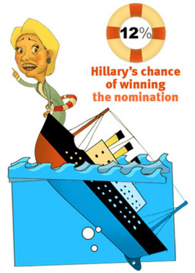 Last night, Slate launched their new "Hillary Deathwatch," a recurring feature that will measure Hillary Clinton's odds of winning the Democratic nomination for the Presidency. Right now they have her at 12%. Also there is a little cartoon of Hillary Clinton standing atop a sinking ship. Cute! Entertainment Weekly founder and blog evangelist Jeff Jarvis raves: "I never liked Slate. And now I like them less." The truth comes out! Jeff never liked you, Slate. Him and Salon used to make fun of you behind your back in 1998, after Internet High School let out. [Slate]