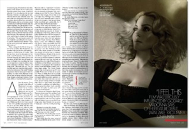 Madonna, in this month's Vanity Fair "Green" issue, says that New York is "not the exciting place it used to be. It still has great energy; I still put my finger in the socket. But it doesn't feel alive, cracking with that synergy between the art world and music world and fashion world that was happening in the 80s. A lot of people died." Oh how novel. This is mighty rich coming from a singer/actress/whateverelse whose only interaction with the city in the past many years has been through carefully planned media events and bodyguard-escorted trips to her schmancy Upper West Side gym. I guess this is just how some artists get when they age, always pining away for the halcyon days, never realizing that they're so entrenched in their mansions and clothing and plundered babies that they wouldn't know "cracking...synergy" if it bit them on the airbrushed ass. [NYMag] Inside photos from the issue after the jump.
