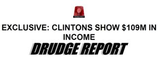 SIREN!Pareene4/04/08 3:52pmFiled to: DrudgeBreakingDrudge ReportOmgsiren.gifthe clintons17EditPromoteDismissUndismissHideShare to KinjaToggle Conversation toolsGo to permalink OMG! The Clintons are making lots of money! Or... something? We don't know what it means but it's SHOCKING. [Drudge]Reply17 repliesLeave a reply