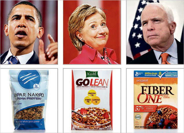 The only adults we know who actually eat breakfast eat sensible things like bagels or bloody marys. But according to this annoying Times story on "microtrends" in political polling (one in a series of ten million identical pieces every paper in the country prints every election season), the electorate defines itself by its choice in shitty cereal. We have never heard of whatever trail mix garbage the Obama voters supposedly enjoy, while Clinton and McCain supporters' cereals of choice appear to have been devised not by polling but by a lazy observational comedian. Fiber One! Because John McCain is very very old, and old people have difficulty moving their bowels. [NYT]