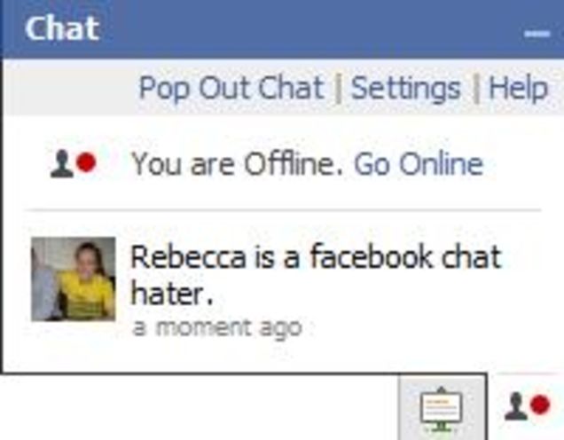 But the biggest drawback to Facebook is chat that I don't need it. I can't have three windows dedicated to LOL'ing with friends. Some of us have work to do, even if that work is writing about goofy internet trends.