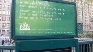 What could be more mind-numbing than checking out someone else's groceries? No, you have to press yes. No, the green button by the red one. So sometimes checkout people call their friends to pass the time at the most listless job ever. Sure, it's annoying, but who could blame them? Fortunately, checking out free-range beef is a completely different professional experience at Whole Foods. Their checkout "team" is so engaged with their work, they don't need to make personal calls. Whole Foods actually hires only friendless orphans to ensure that nothing stands between you and your organic arugula. [via Racked]