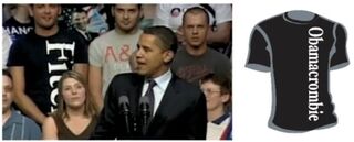 Remember those weird meatheaded tools in Abercrombie gear who distracted everyone during Obama's rally in Evansville? Well, now you can be one of them! Sort of! By buying these Obamacrombie shirts, which are not licensed or sanctioned by either Obama or Abercrombie and Fitch so they'll probably be shut down in minutes. [Obamacrombie]