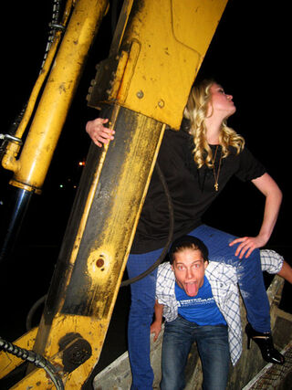 I would also like to thank [former American Idol-er] Constantine Maroulis for keeping me alert and from fading into delirium on-set in the 99 degree heat. Also, Nicholai H., thank you for throwing such an amazing house party and to Jon Alagem for keeping the partygoers in Nicky's backyard from causing overwhelming noise pollution. [Weeds actor] Hunter Parrish deserves a warm thank you for unwillingly climbing/posing in a large piece of construction machinery and proceeding to get covered in nearly-unremovable grease. And an enormous thank you to Leah Pepper for hosting my unofficial last-night-in-LA party in her hotel room sponsored by Johnny's Pizzeria and the troupe of underage partygoers Barron [Hilton] stampeded the room with. Thanks for making my work-oriented trip to LA so counterproductive! I love you all!xoxo