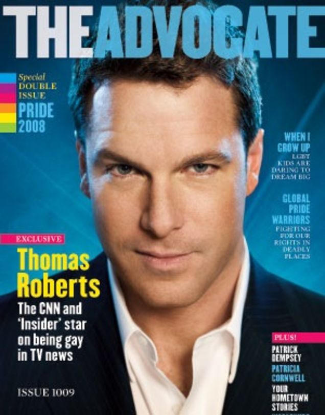 Out 'n proud former CNN anchor and current Insider (shudder) correspondent Thomas Roberts spoke to The Advocate this month about gay dudes doing the news. Apparently there are quite a few of them running around, the obvious silver fox in the room being just one of many. And, out or not, they tend to do OK, as long as they're not looking for an evening anchor gig. A talent agent named Mendes Napoli spoke with the magazine as well, saying: "You can be a morning anchor, a weekend anchor, an afternoon anchor, a reporter — they love gay reporters now because they're so animated, they're not stiff. But a primary male anchor who's gay? It's an issue." Huh. "Animated"? What does that mean?? Are there weathermen doing Gloria Estefan routines and picking out snappy outfits for ladies? I should be watching this! Or, is "animated" how one would describe watching nighttime newsman Anderson Cooper trying to button himself up? It's all kind of unclear, but it's good to know that the gays are providing some entertainment value in those dusty old newsrooms. After the jump, just for the heck of it, Roberts on those (NSFW) nude Manhunt photos.