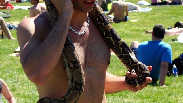 Some of us went to Coney Island or upstate. Others went to the Hamptons! And some—well, one—of us toted our pet boa constrictor over to Central Park while chatting on the cell phone. But other than that—lookin' good, dude. Call me when you get rid of the weird pet! [Photo: Istolethetv's Flickr]