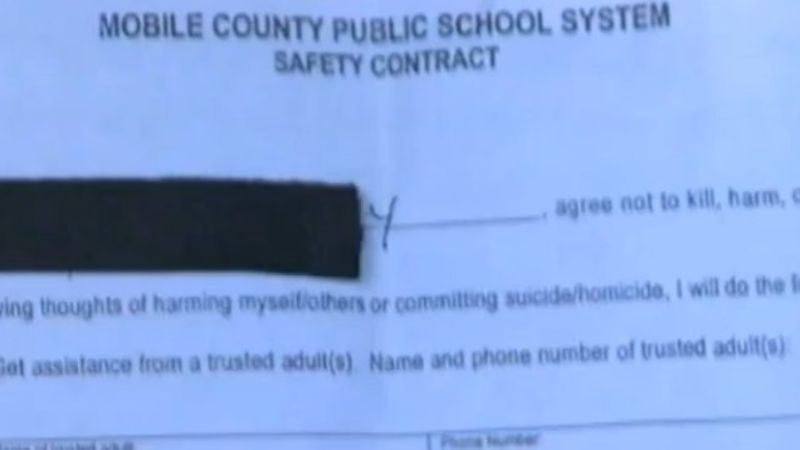 5-year-old Elizabeth was sent home after school officials made her take a questionnaire to evaluating her for suicidal thoughts, then had her sign the safety contract promising to contact an adult if she was thinking of suicide or homicide. This all happened while her mom waited in the lobby to pick her up, the upset parent told WPMI.