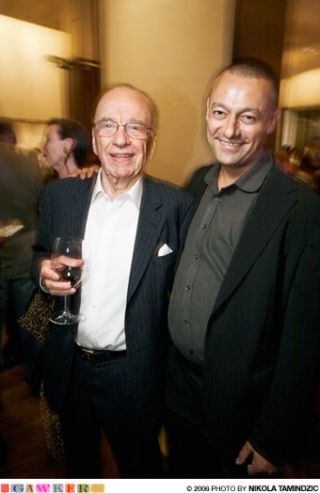 But by the time Roshan managed to tap Murdoch's shoulder and extract him from his group, Nikola was distracted by some pretty girl; by the time the Radar editor refocused the Serbian photographer on the task at hand, a friend of Murdoch, Tom Freston, came over to have a tycoony chat; and by the time a slightly embarrassed Roshan finally got his photo opportunity, Zuckerman was distracted by a gold-digging Julia Allison. "He's single, right?" she asked.