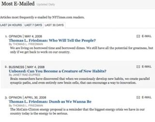 What about the newspaper's own journalists? Well, it is true that they don't know the pageviews on each article they byline. But they have one measure: the Times' list of the most emailed items of each day. And some Times reporters set so much store by an appearance on the list that they'll fix the numbers by emailing around an article themselves.