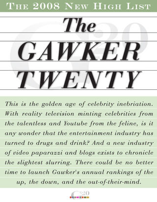 Click to viewIt's shaping up as a cruel summer for drunk, high or otherwise messed up celebrities trying to stay on the straight and narrow. Comedian Andy Dick was arrested this week for groping a 17-year-old's breasts while in possession of marijuana and Valium, in something of a reprise of his bust last year for doing blow in a nightclub. Actress and teen rehab veteran Drew Barrymore is now reported to have boozed her way to a breakup with actor Justin Long. Heather Locklear fled "depression and anxiety" rehab in Arizona after barely two weeks. Even a Rolling Stone, Ronnie Wood, surrendered himself to rehab again after leaving his wife for a 19-year-old cocktail waitress — and two bottles of vodka per day. Maybe all that summer daylight is pushing everyone over the edge! In any case, it's tough to keep track of who's where on the customary arc of high-profile substance abuse: embarrassment, criminality, rock-bottom desperation, rehabilitation and then either another trip around the circle or a break into the freedom of sobriety. That's why we've compiled a guide to once and future inebriated celebrities: 20 actors, singers, models and socialites who hog way more than their fair share of space in the gossip pages — and here on Gawker. We'll update and expand this list over time as a sort of encyclopedia of shame; your comments and tips are encouraged. (The arrows, by the way, indicate trends in drunkenness, so an upward arrow means getting drunker, downward means getting more sober.)