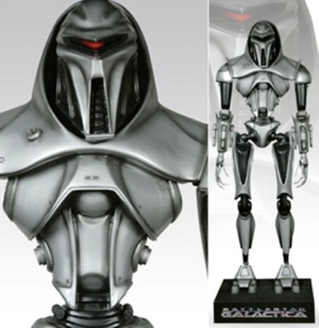 They're selling life-sized repilca Cyclons just like the ones in Battlestar Galactica! "You can get one from either the dopey original series or the cool new one. These Cylons [sic] are seven feet tall, weight 300 pounds, have little LED lighting effects in their visors - and sell for a cool $7,900. (That's, like, $8,000 minus the $100 Hopeless-Nerd Rebate.)" Um, anyone got $7,900 handy? Pay you back, I promise! [InsideSoCal]
