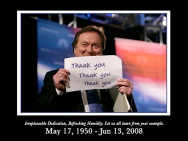 Impact: 4. I suppose all of this is just something of a twenty-one gun salute from his colleagues. Some people, like Shafer, may criticize the coverage for being indulgent. Of course it's indulgent, these people are his friends and have newscameras in front of them. Whether some sinister network exec is standing in the shadows, rubbing his hands together, with dollar signs in his eyes seems mostly inconsequential. The lamentation and celebration seems genuine, heartfelt.