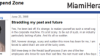 The Miami Herald just laid copy editor Brayden Simms off. Amazingly, he also wrote a blog for them about saving money in this terrible economy. He wrote a depressing column about how they tricked him into taking a full-time job and then outsourced it to India. Now he is blogging-for the Herald!-about meeting with his financial planner to discuss how to survive without an income. This is just sick. Jesus, they're making him dig his own grave after his execution. Please forward this to every journalism student you know.