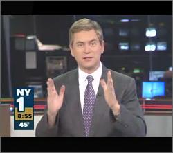 Pat Kiernan is the aw-shucks boyish news anchor on NY1 and everybody loves him. His is the gentle face we all see first thing in the morning, easing us into the day with good cheer and sobriety. He reads from the city's newspapers in a soothing 8-minute segment every morning called "In The Papers," which has captivated thousands and thousands of people. It's really quite impossible to explain to outsiders just why Pat Kiernan is the greatest newsman in New York, except for his jolly, bumbling colleague Roger Clark. Anyhow, Doree (the nice ex-Gawker one) wrote a profile of the man for the Observer, full of interesting Kiernan trivia. Did you know he hosted The World Series Of Pop Culture on VH1? We did, because there's a clip of him reading the lyrics of "My Humps" in his competent, Canadian voice. What are you gon do with all that ass inside them jeans, Pat?: