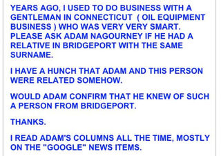 Oh, hey, Times political reporter Adam Nagourney, we hope you're reading! Because someone is trying to use this site to reach you regarding your relations, or possible relations, who bestowed you with the genes necessary to write that blog you used to keep, that insane story about being a tourist DC and, most impressively, your widely-noted columns for the "Google" News. Wait, do you even work for the Times anymore? Click the thumb to read the email.