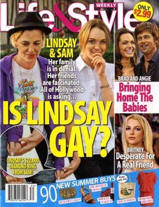 Oh look, everyone's finally starting to catch on to the whole Lindsay Lohan/Samantha Ronson clambake. The Mirror is reporting that deejay Sam's deejay/producer brother Mark and his girlfriend approve of her lesbadoodle relationship with actress and former skiing enthusiast Lindsay. Mark's girlfriend Daisy (also a deejay?) says "Their relationship is totally genuine. And they're just so sweet together." Aw, that's nice. Couple that with the new Life & Style magazine cover (above), and it looks as though the mainstream celebrity-industrial complex is finally ready to accept what people like us have been talking about for a month. Though, heh, we were a little slow to catch on, too. Now I'm not going to get into the whole "this would be so much different if it were two men" thing, so I'll just leave you with a video of Ronson after the jump.