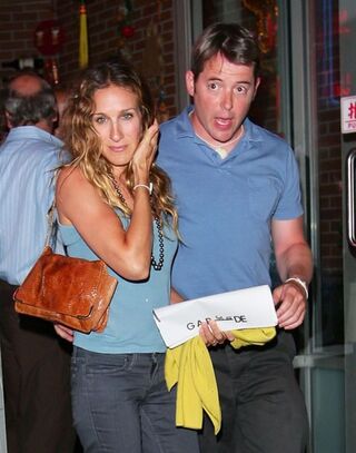 [Actors Sarah Jessica Parker and Matthew Broderick (who I'm sure are both lovely people) leaving a Manhattan restaurant last night. Broderick was recently accused of adultery with a twenty-something red headed chippy. Image via Splash]